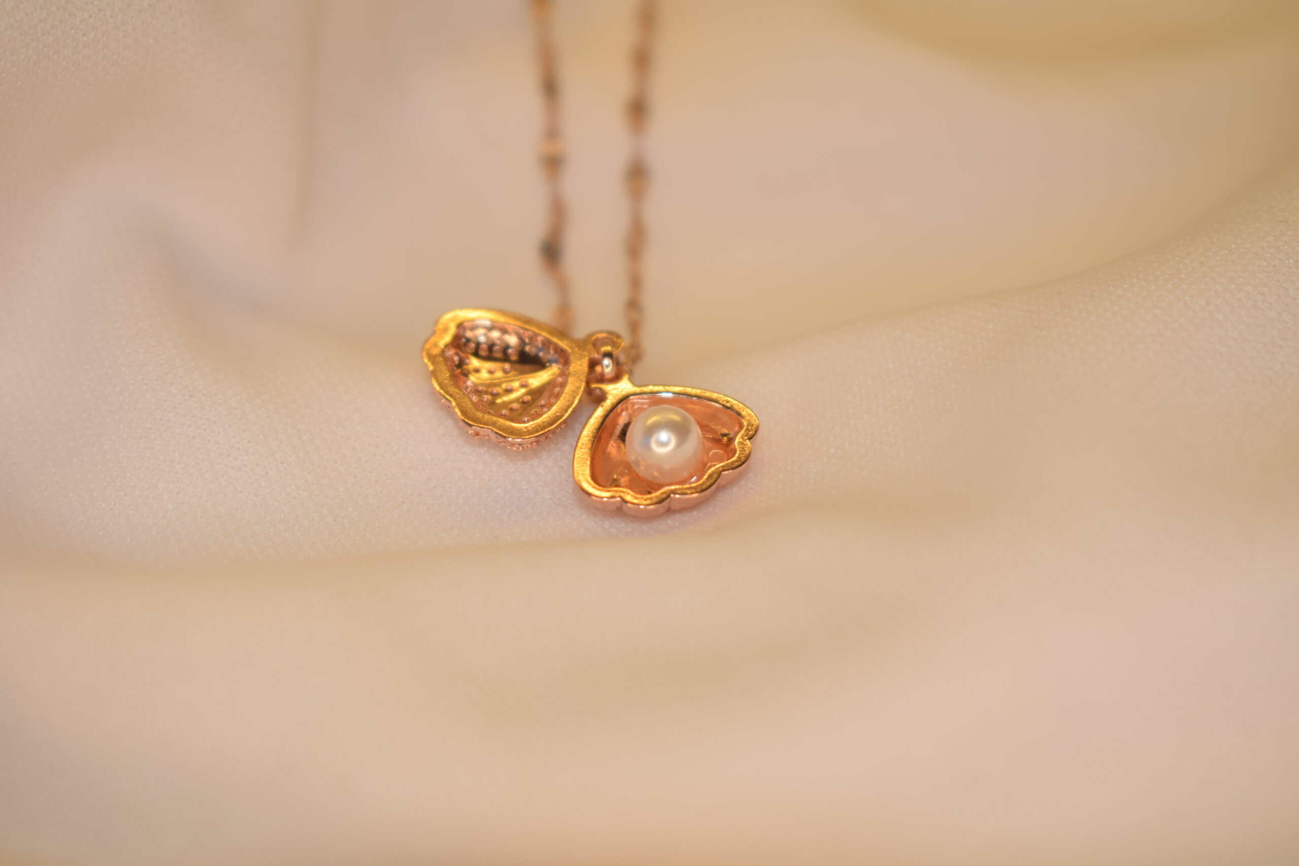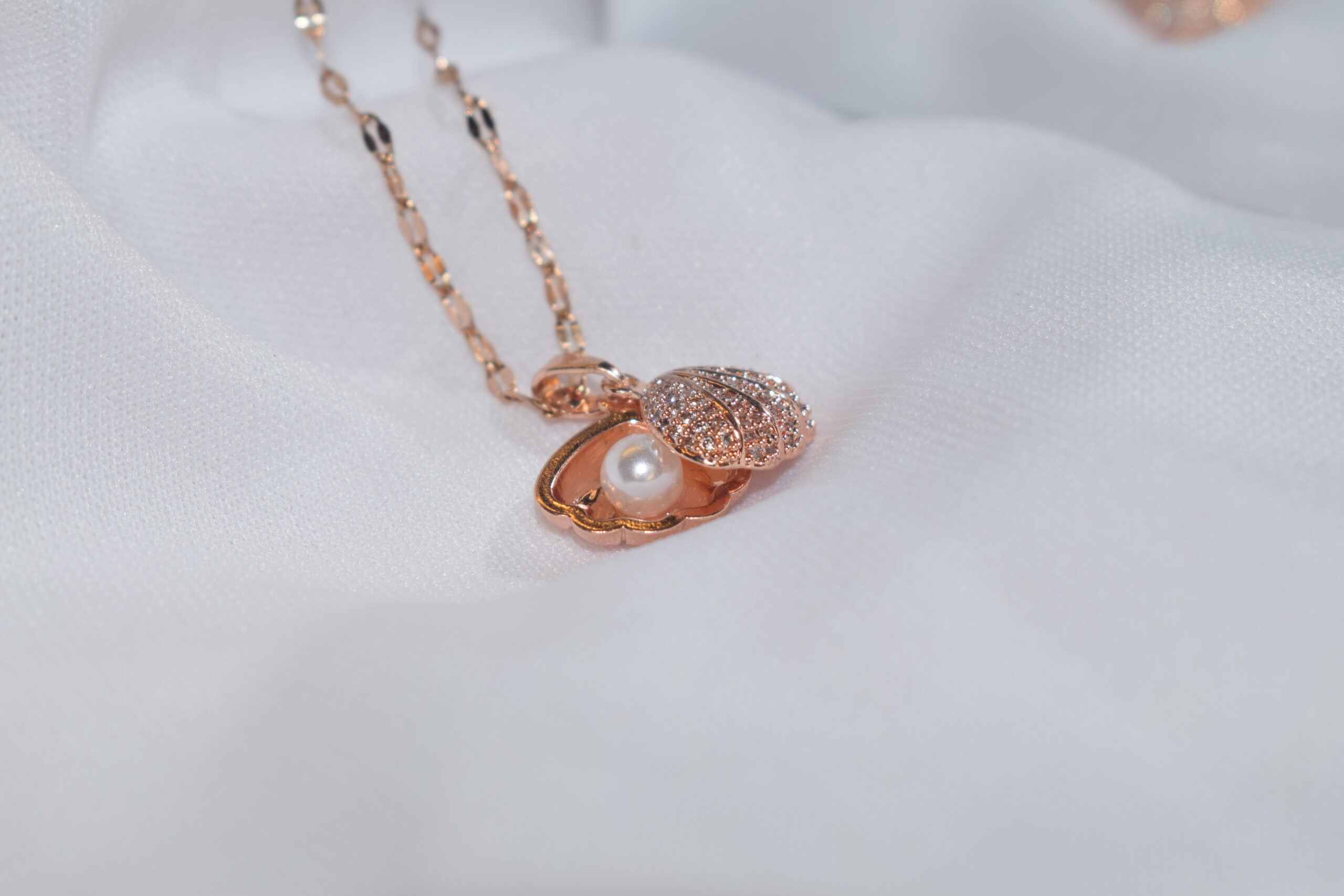 | Add a touch of elegance with this Rose Gold Seashell Necklace featuring a delicate pearl inside. The stylish pendant is complemented by a 21.5 cm chain, making it perfect for daily wear or gifting. Lightweight, trendy, and classy—ideal for all occasions. |